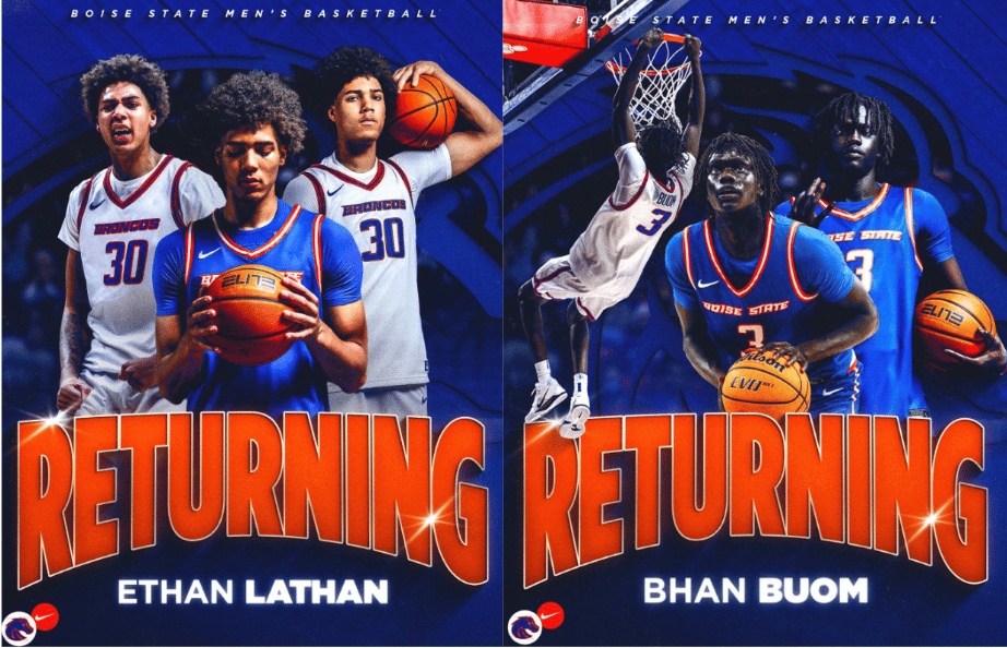 🔼 Staying Put. Boise State men’s basketball announced that Ethan Lathan and Bhan Buom will return next season!